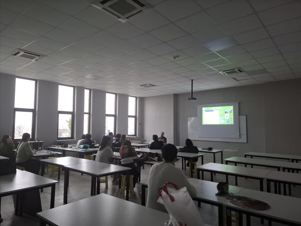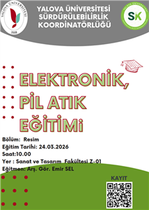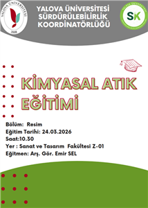 24.03.2026 tarihinde Resim Bölümü 1. sınıf öğrencilerine Araştırma Görevlisi Emir SEL tarafından Sıfır Atık Eğitimi, Kimyasal Atık Eğitimi ve Elektronik, Pil Atık Eğitimi yüz yüze olarak verilmiştir.