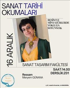 Yalova Üniversitesi Resim Kulübü tarafından düzenlenen Sanat Tarihi Okumaları etkinlikleri kapsamında, 16 Aralık günü saat 14.00’te Sanat ve Tasarım Fakültesi Z01 dersliğinde söyleşi etkinliği gerçekleştirildi. Etkinliğin konuğu, çalışmalarıyla çağdaş sanat alanında dikkat çeken ressam Meryem Günana oldu.